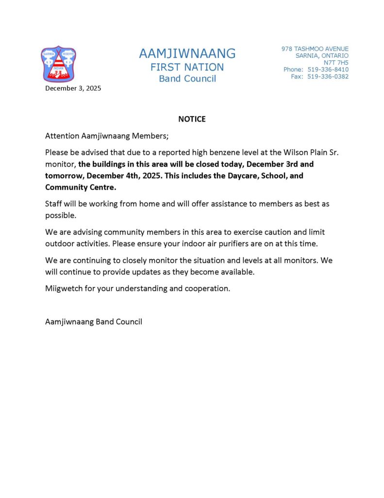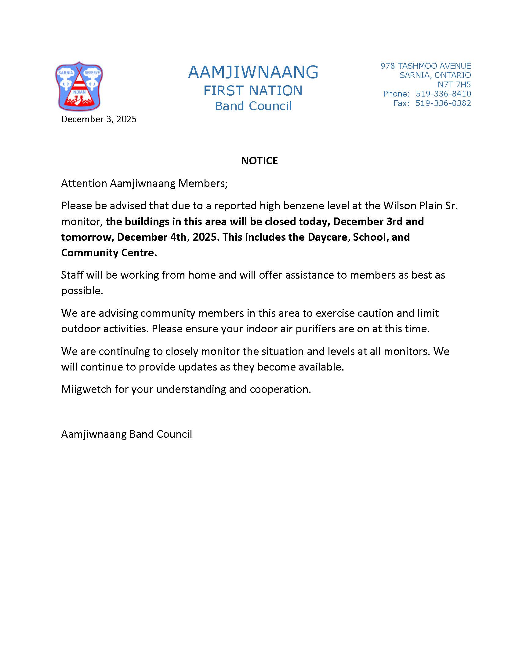 NOTICE TO BAND MEMBERS RE: DISTRIBUTION FRIDAY, DECEMBER 5, 2025 8:45 – 12:00 PM to 1:00 – 4:45 PM Maawn Doosh Gumig Community Centre, 1972 Virgil Ave